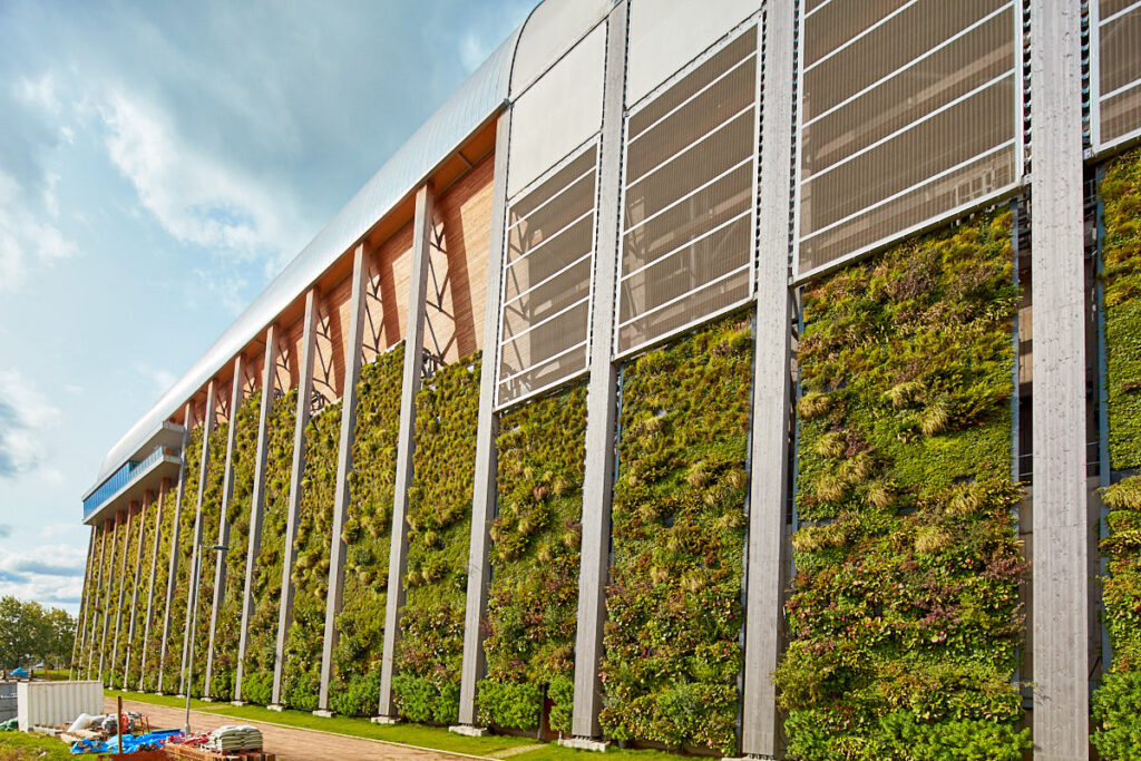 Large green wall façade designed to to enhance biodiversity and create connect 'green corridors'.