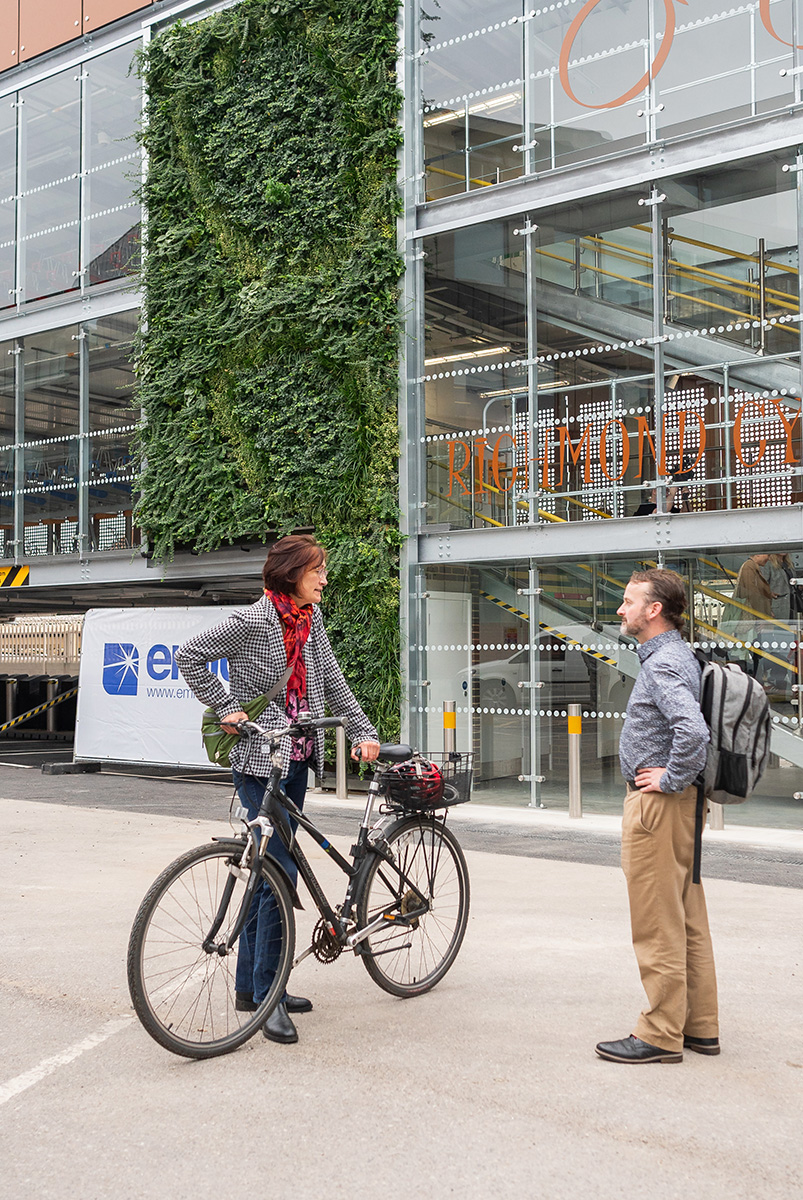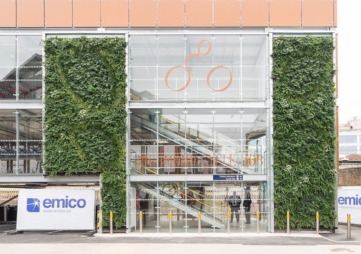 The living walls at Richmond Cycle Hub provide a striking green landmark on the station site.