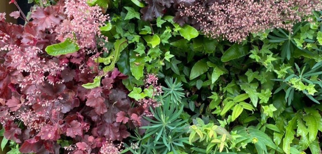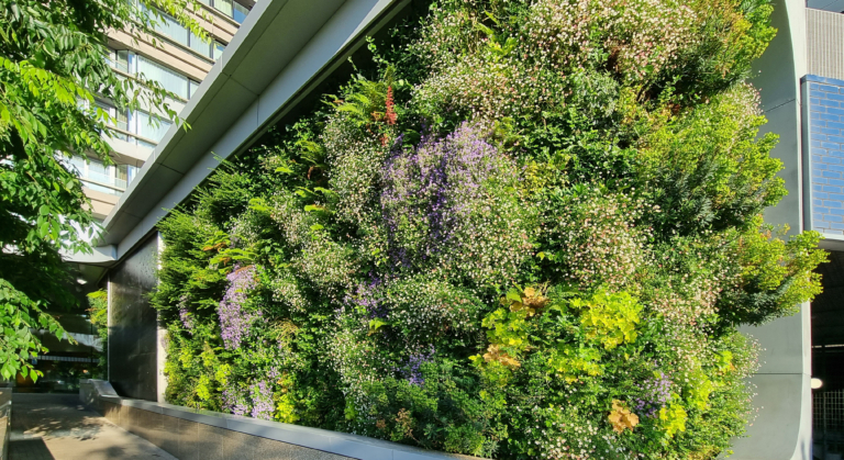We use plant matrices, where multiple species are combined within a single zone, rather than relying on monoculture. This diversity doesn’t just add visual appeal – it helps the wall withstand environmental stresses. By using a variety of plant types, we reduce the risk of pests or diseases wiping out large sections of the wall, ensuring it continues to flourish throughout the year.