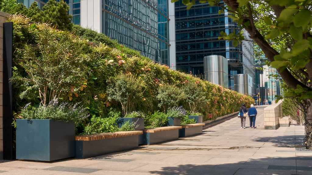 Biotecture delivered PlantBox living walls in prominent locations across the Canary Wharf estate in 2021 and 2022. They are now helping to enrich the public realm and contribute to Canary Wharf Group’s (CWG) ambitious sustainability goals.
