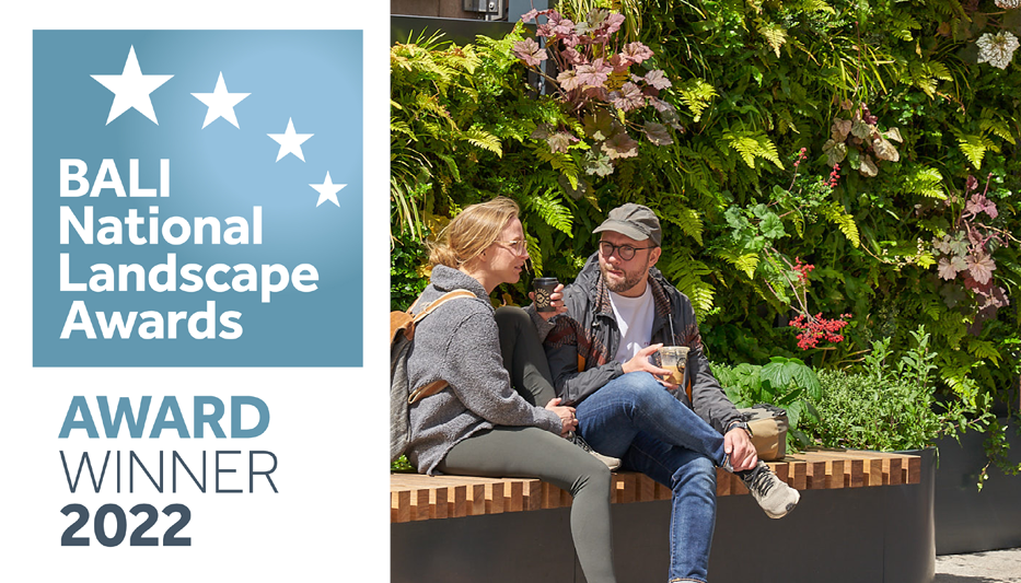 The BALI judging panel recognised how the Biotecture living walls are helping to improve air quality, attenuate rainwater and increase biodiversity for residents, commuters, workers and visitors to the area.