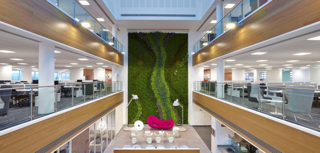 In addition to the functional benefits, plants and living walls add a touch of beauty and serenity to office spaces. The vibrant colours and textures of plants create an aesthetically pleasing environment, enhancing the overall ambiance and making the workplace more inviting for both employees and visitors. Moreover, incorporating greenery demonstrates a company’s commitment to employee well-being and environmental responsibility, enhancing its brand image and attracting like-minded individuals and clients.